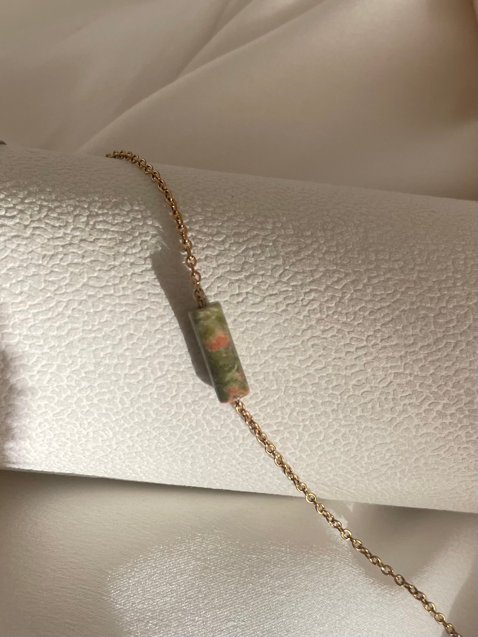 Le bracelet Gaïa est fabriqué avec de la pierre d’Unakite , un élément naturel qui rappelle la terre et la nature. Portez-le pour une connexion profonde avec la nature et pour apaiser votre esprit.