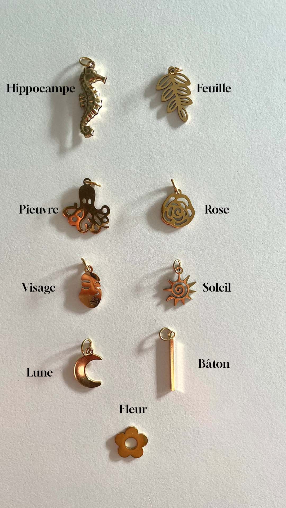 Choisissez six pendentifs qui vous inspirent pour personnaliser vos boucles d'oreilles. Les créoles sont incluses directement dans le pack.