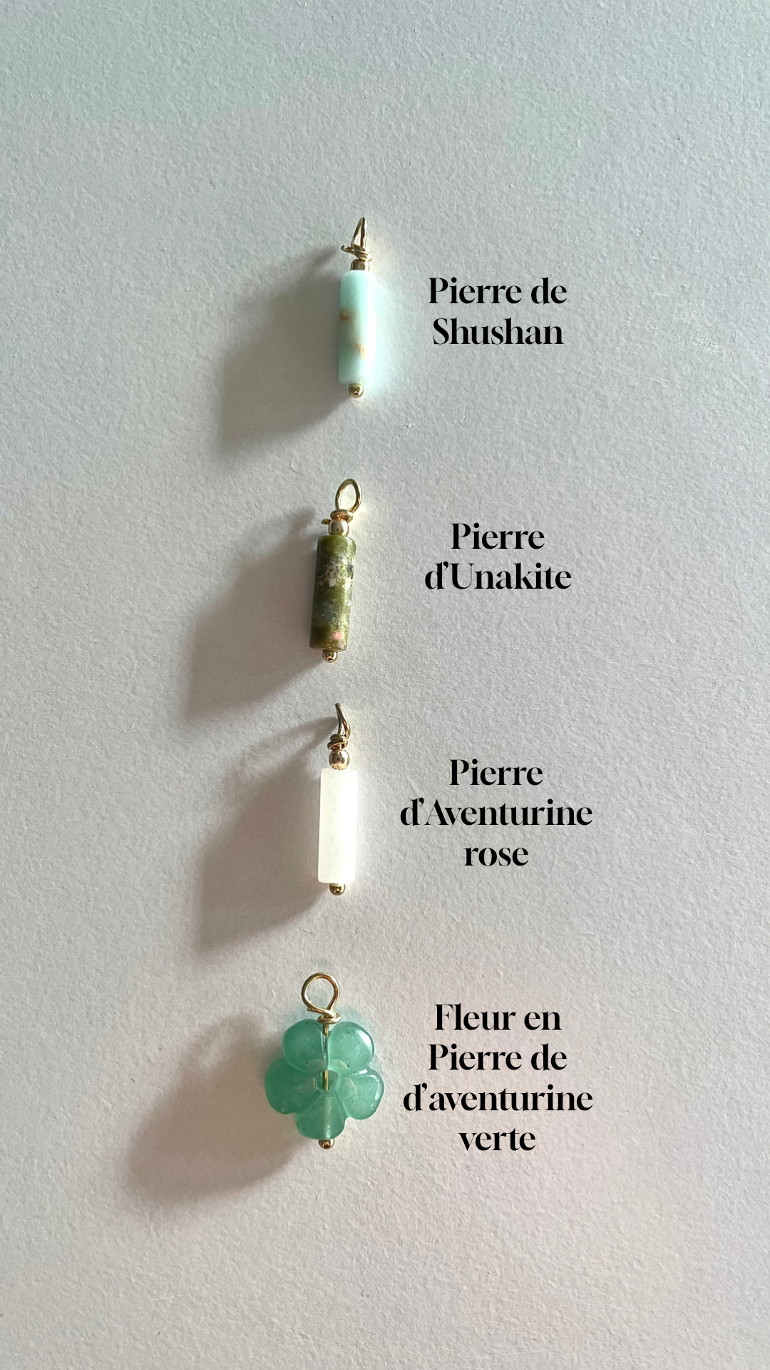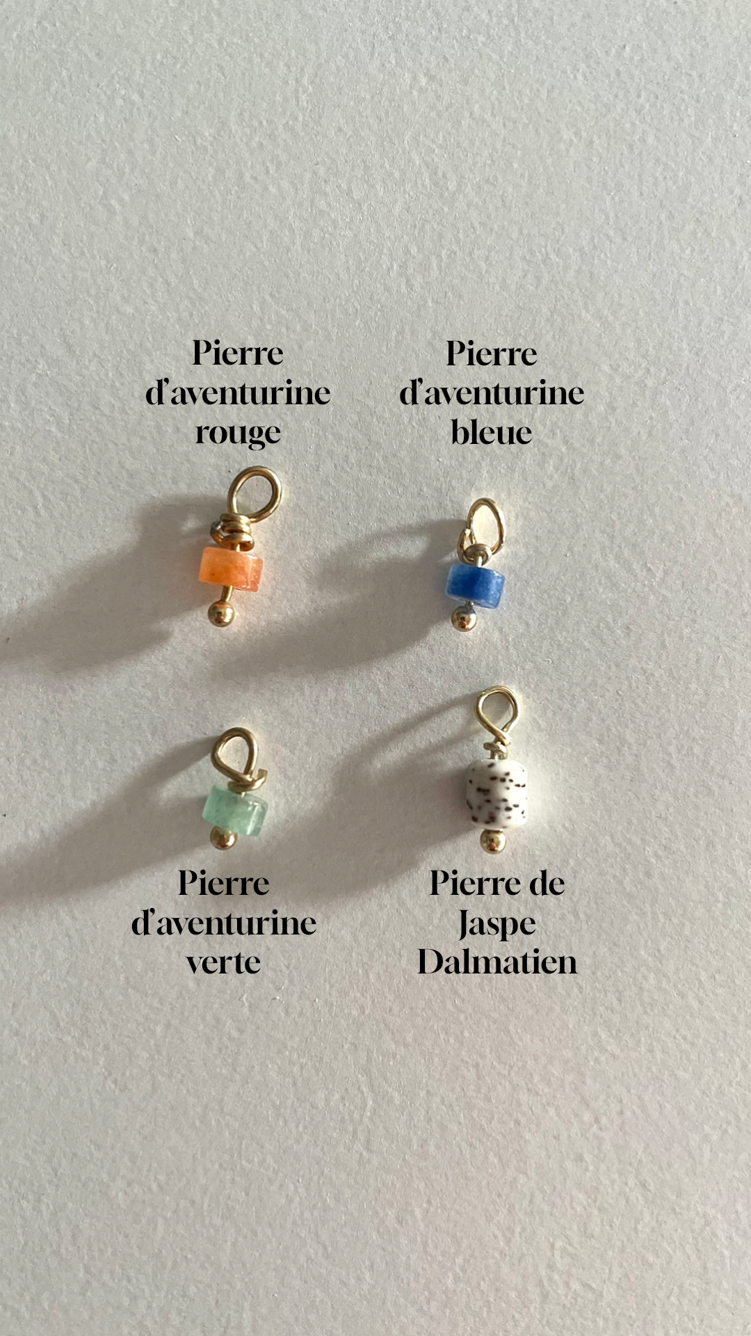Chaque bijou est fabriqué/assemblée à la main par mes  soins. C’est pour ça que chaque pièce est unique et peut légèrement varier par rapport aux photos.